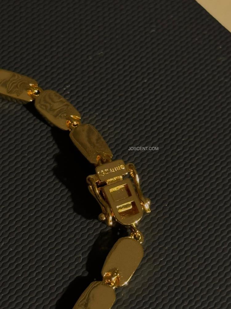 الجزء الأمامي للإسوارة يضم تصميماً مفتوحاً مزوداً بحلقات متحركة صغيرة ومرصعة بالكامل بالزركونيا، مما يمنحها لمسة عصرية وحيوية، حيث تضيف الحلقات المتدلية انسيابية وجاذبية خاصة عند ارتدائها.