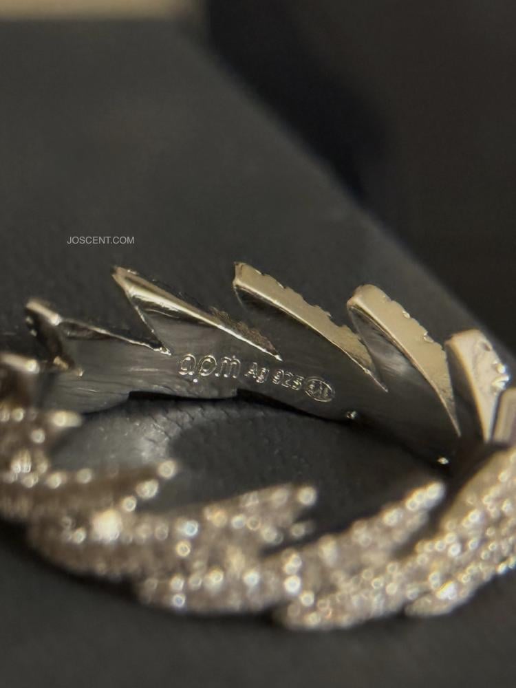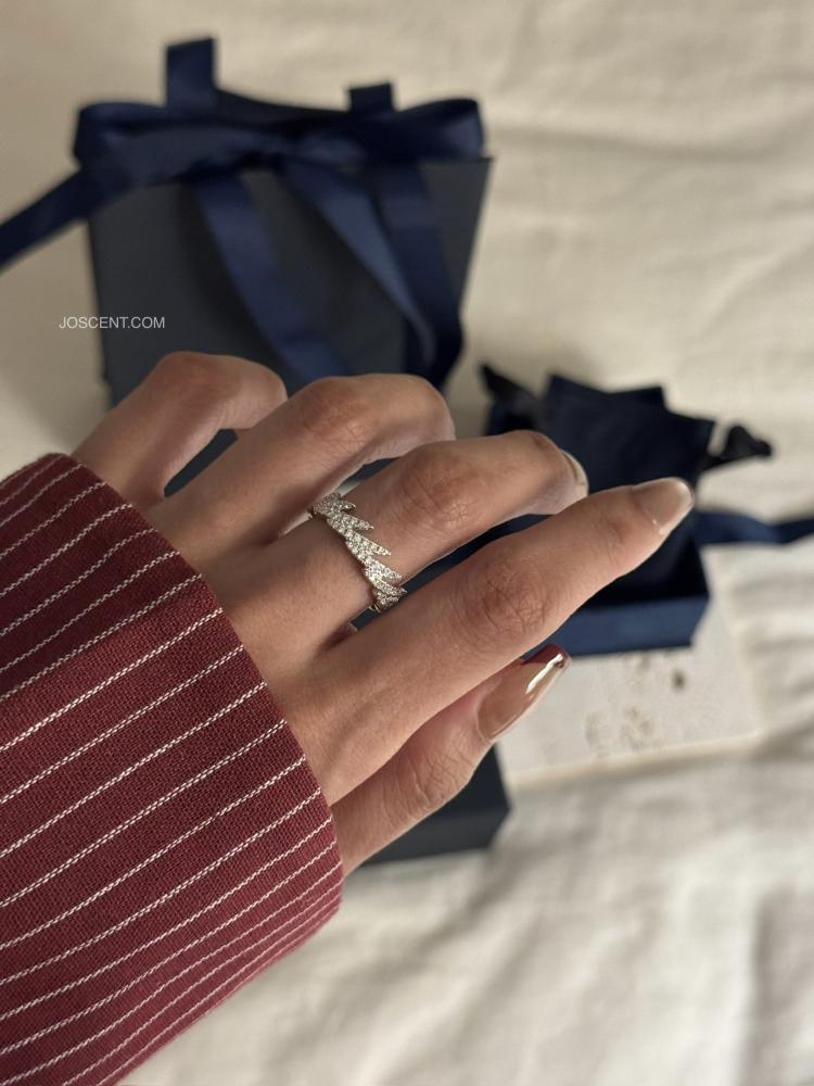هذا الخاتم مصنوع من الستانلس ستيلس معدن مقاوم للصدأ ومطلي بطلاء الفضة، ومرصع بالزركونيا على شكل مكعبات باللون الأبيض.